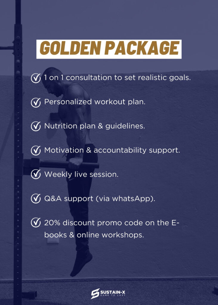 If you just started your fitness journey, this program is made specifically for you. We'll provide you with a fitness plan suitable for your level and as you get fitter, the program gets more challenging to meet your level of competitiveness. So, you'll be provided with sustainable programing, intense monitoring and knowledge enhancement.